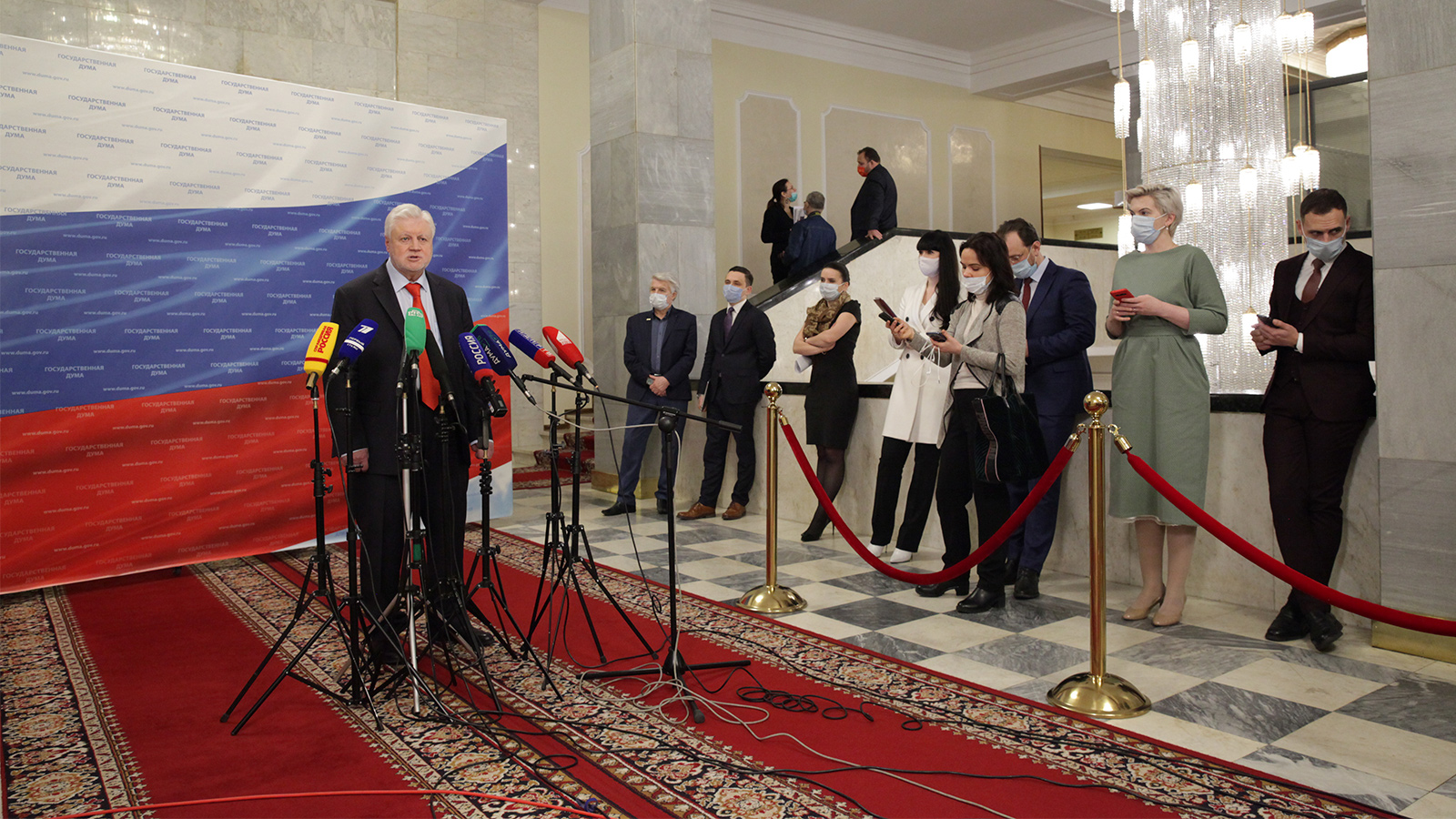 26 января 2021Пресс-подход Председателя Партии СПРАВЕДЛИВАЯ РОССИЯ, руководителя фракции "СР" в Госдуме Сергея Миронова перед пленарным заседанием Госдумы